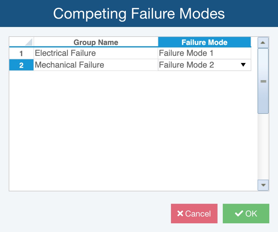 Once Calculate Competing Failure Modes is checked on, you can assign a Group Name to each data point.