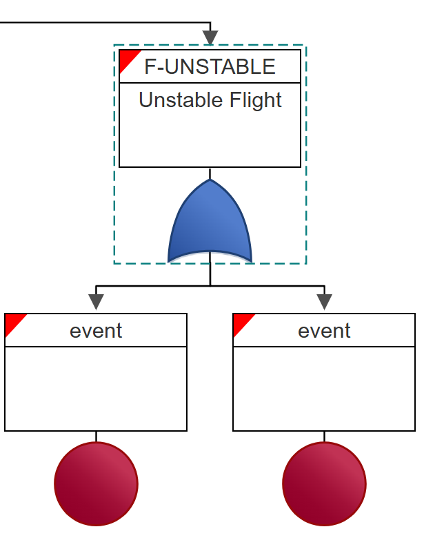 You construct your fault tree by organizing a series of logic gates with their associated inputs, which can be either other gates or events. Events are the lowest level items in your fault tree.