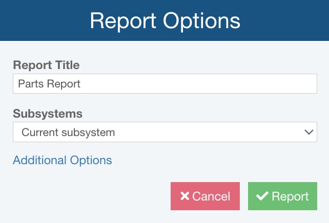 Click Report from the Sidebar menu to bring up the Report Options dialog.