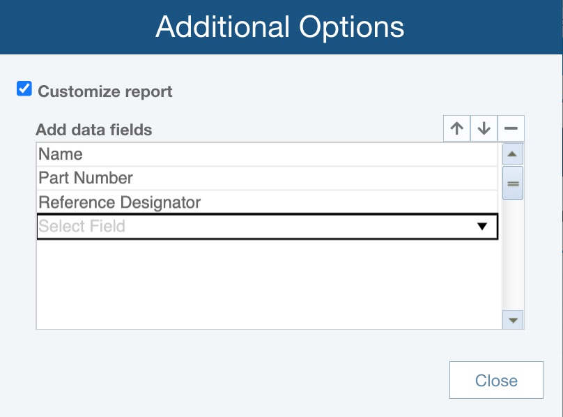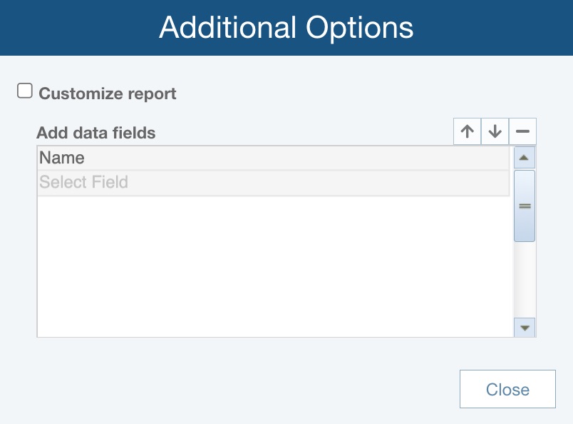To add a data field to the report, click Select Field to bring up the dropdown list of data fields. Select the field you want to include.