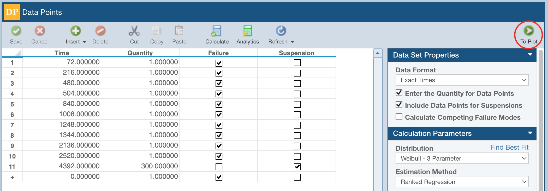 To view the Life Data plot, click the To Plot button in the rightmost section of the toolbar.