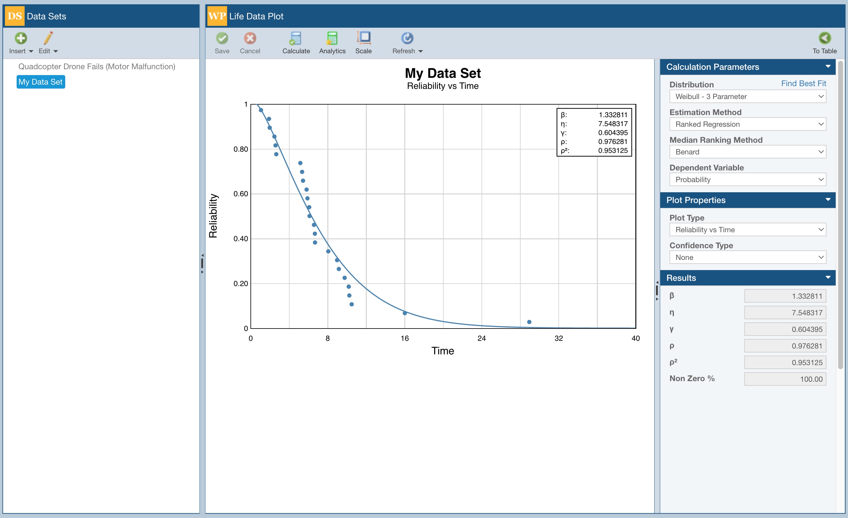 Note: The Plot below was generated using random data, so your Life Data Plot and results will differ from this screenshot.