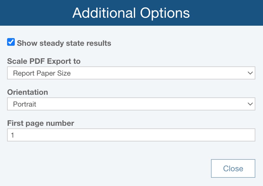 Select whether you want to Show steady state results on the report; they will appear at the top of the report with the Report Title.