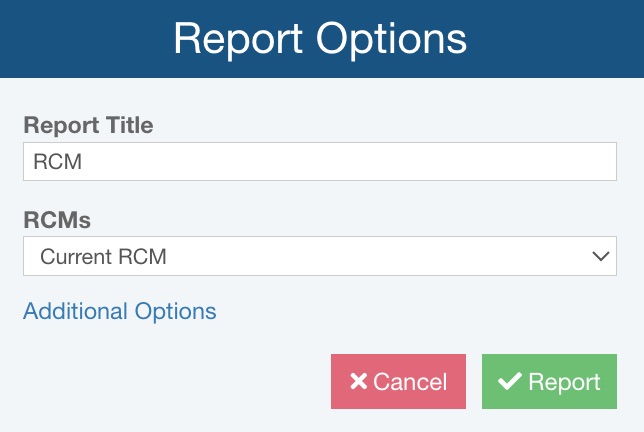 - Select which RCMs to include in your report: the Current RCM, or All RCMs for the selected Subsystem.