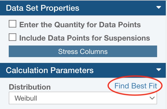 Click the Find Best Fit link in the Properties pane under the Calculation Parameters heading by the Distribution setting.
