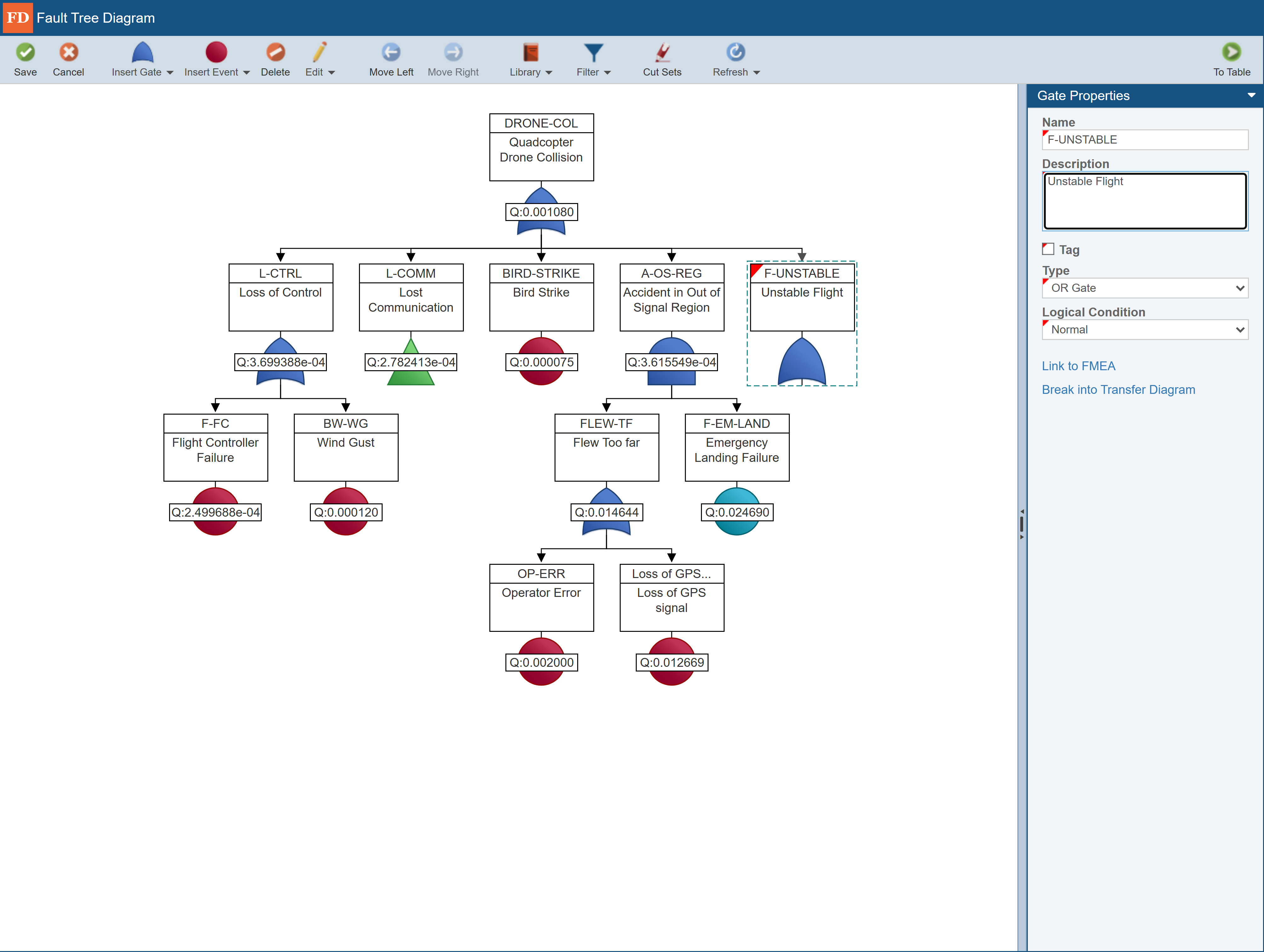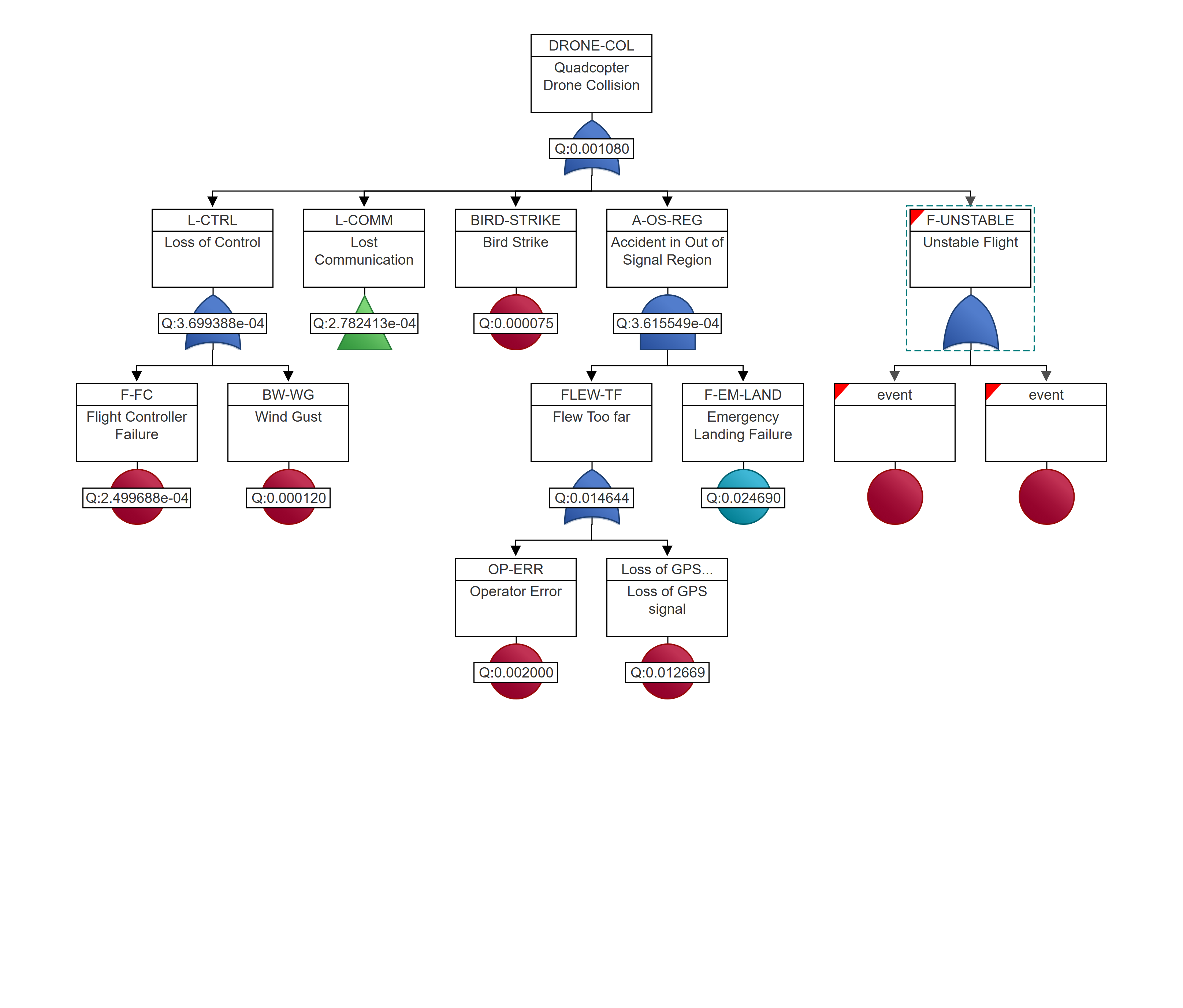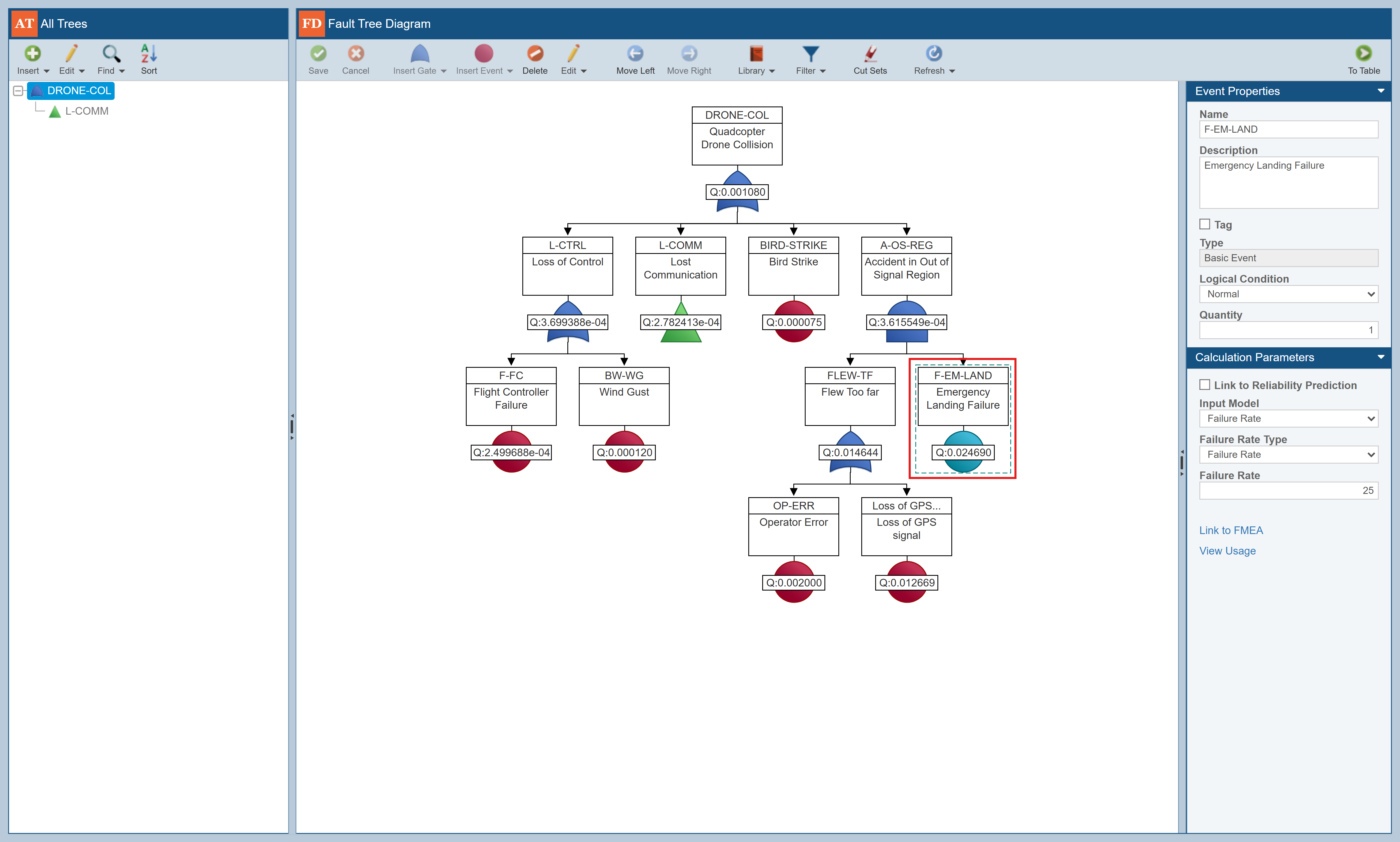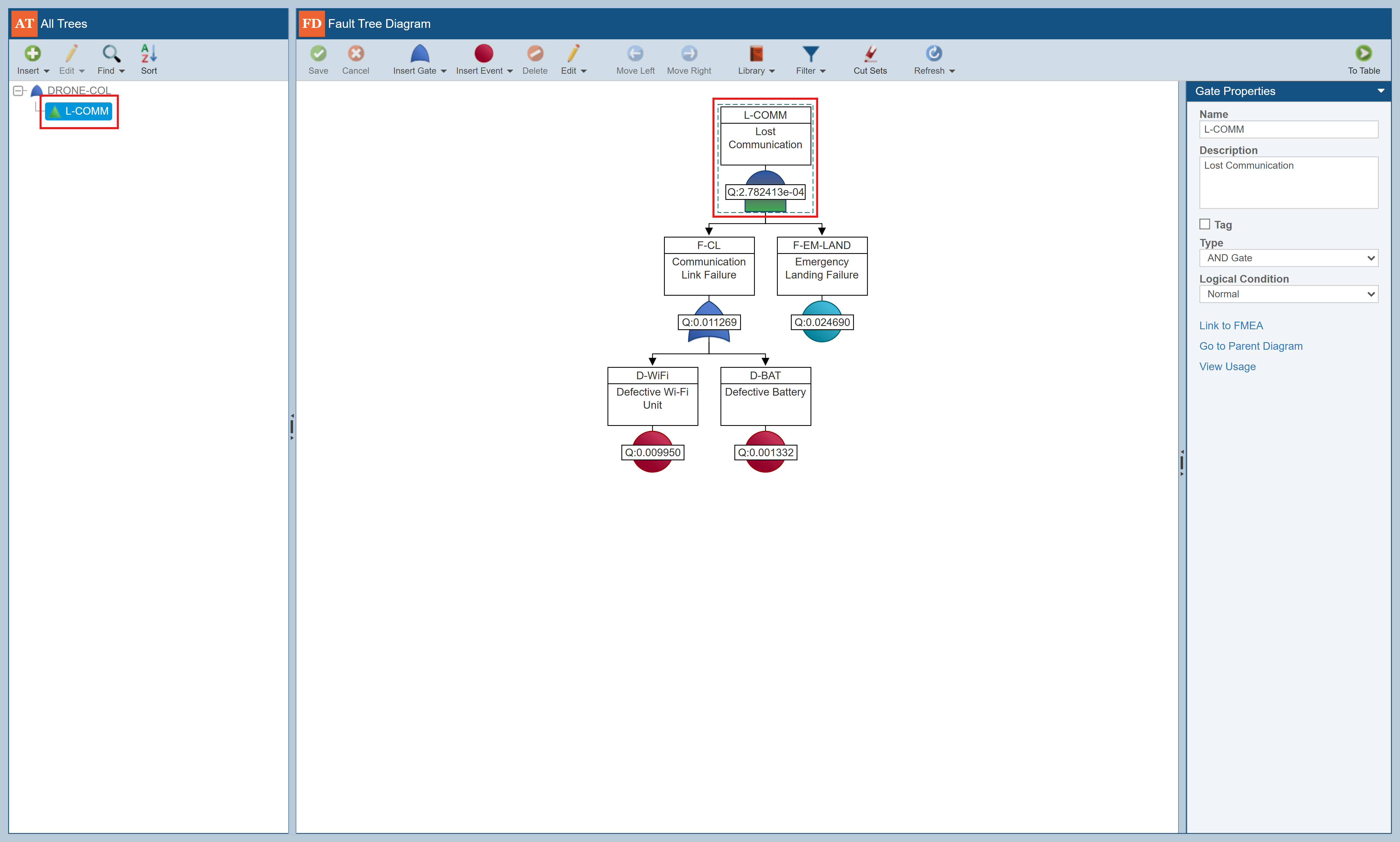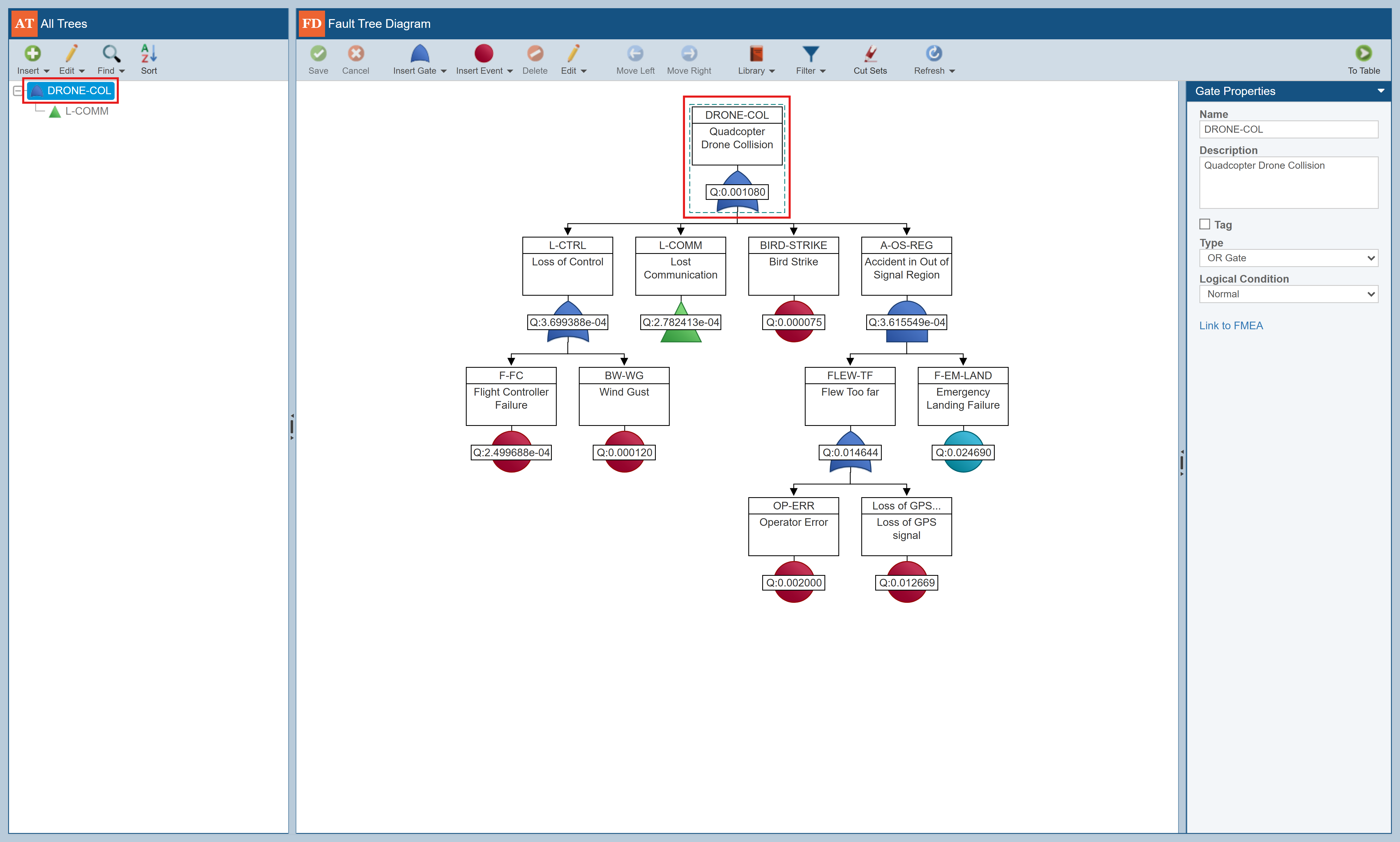 Click back on the "DRONE-COL" Top Gate in the All Trees panes to go back to the main fault tree diagram.