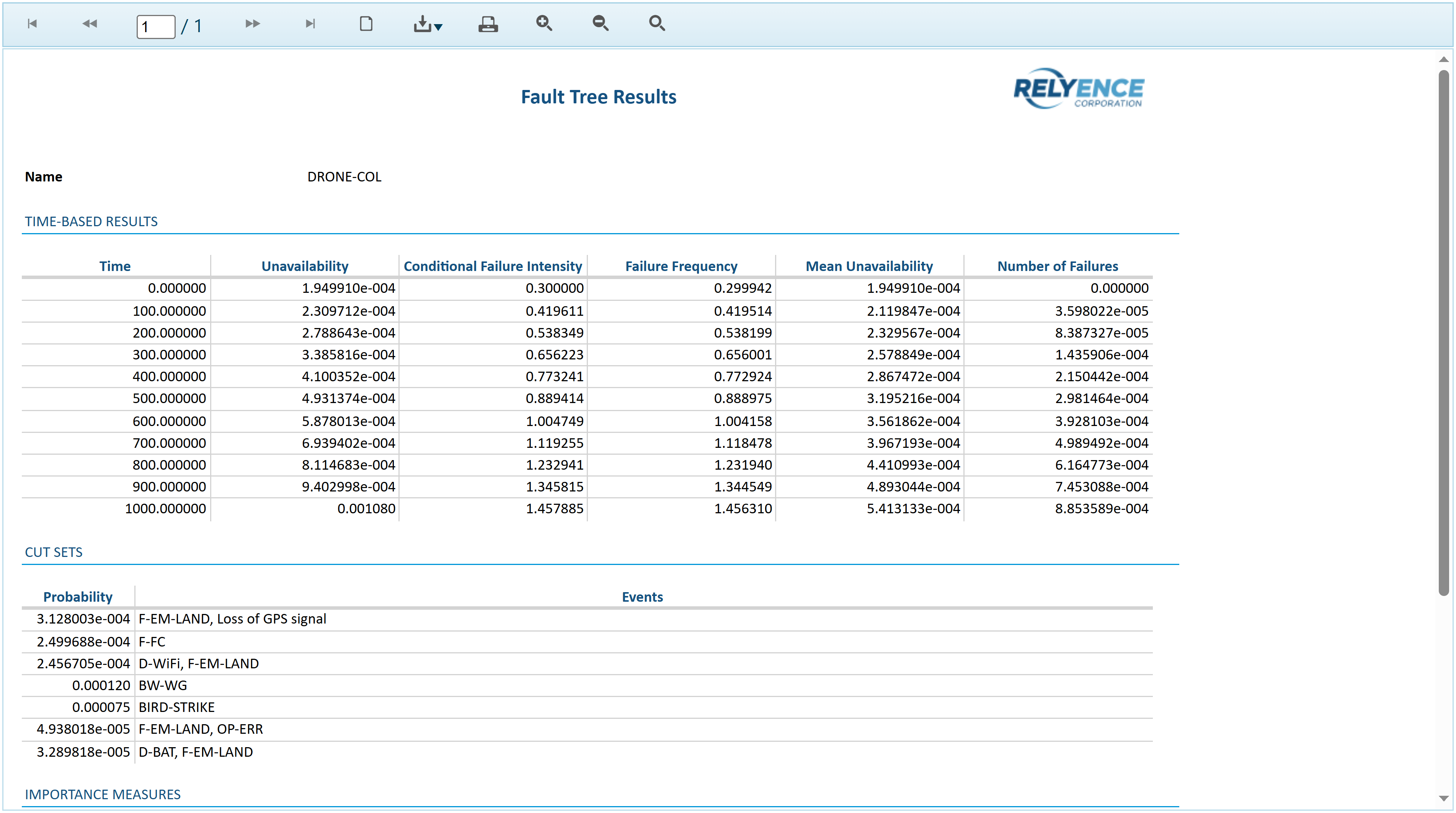 For this tutorial, we will use the Drone Example supplied with Relyence Fault Tree.