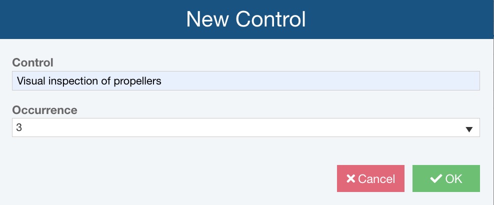Prevention Controls: Select Visual inspection of propellers. (Click the Control Selection button to bring up the Prevention Controls dialog and select the checkbox next to Visual inspection of propellers, then click OK.)