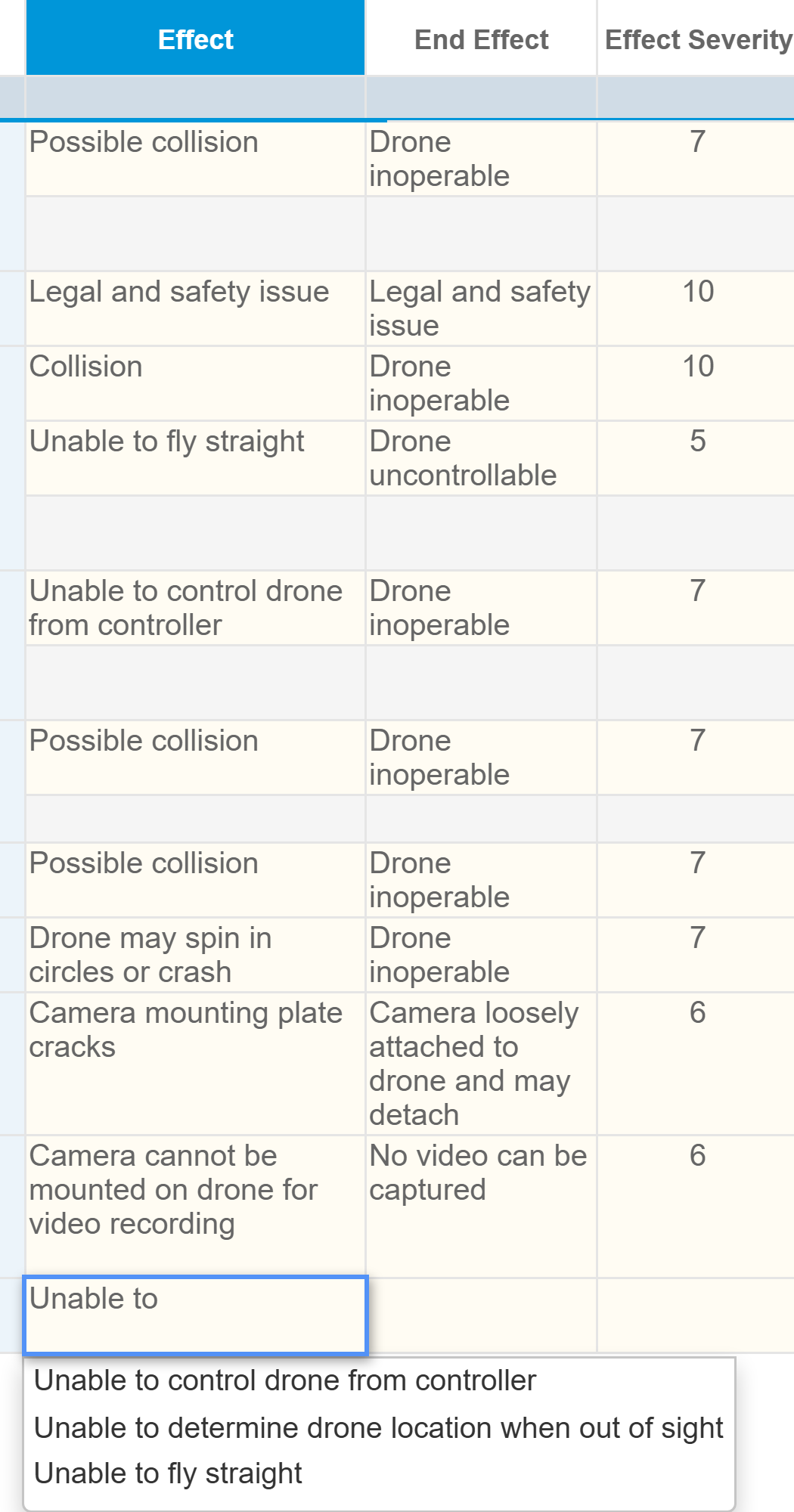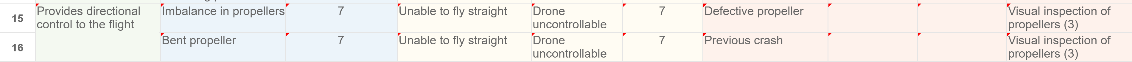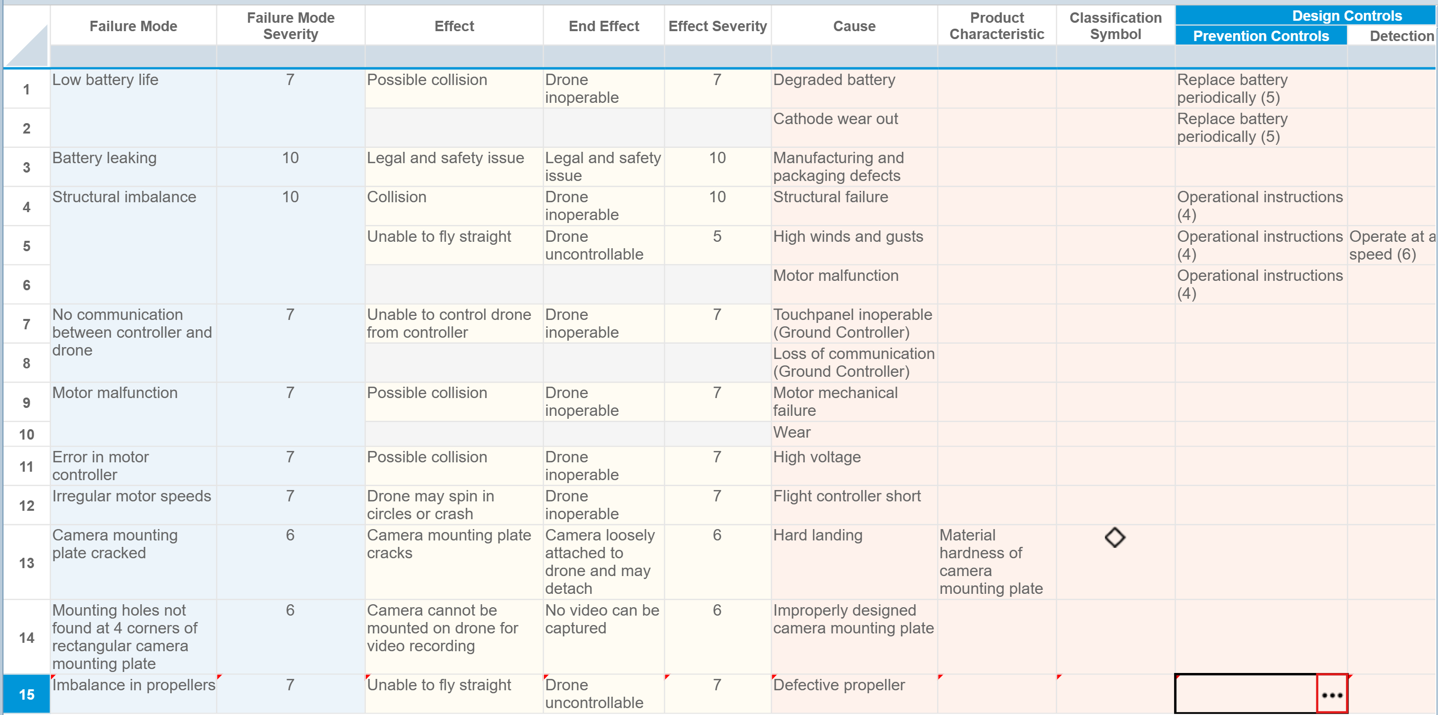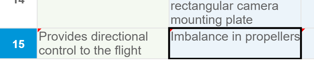 We are now going to add more analysis data into our DFMEA. We want to add information about the failures that could be caused by the drone propellers.