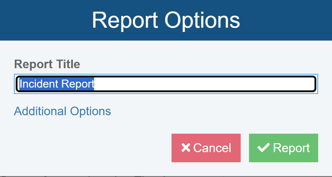 Keep the default Report Title "Incident Report".