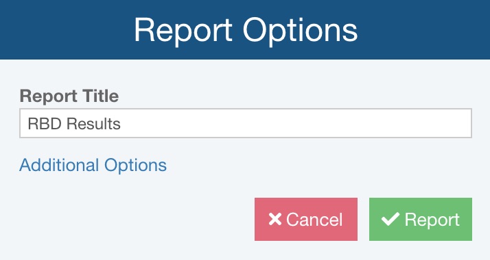 If needed, click Additional Options to see additional reporting options. For more details about these options, see Generating RBD Reports.