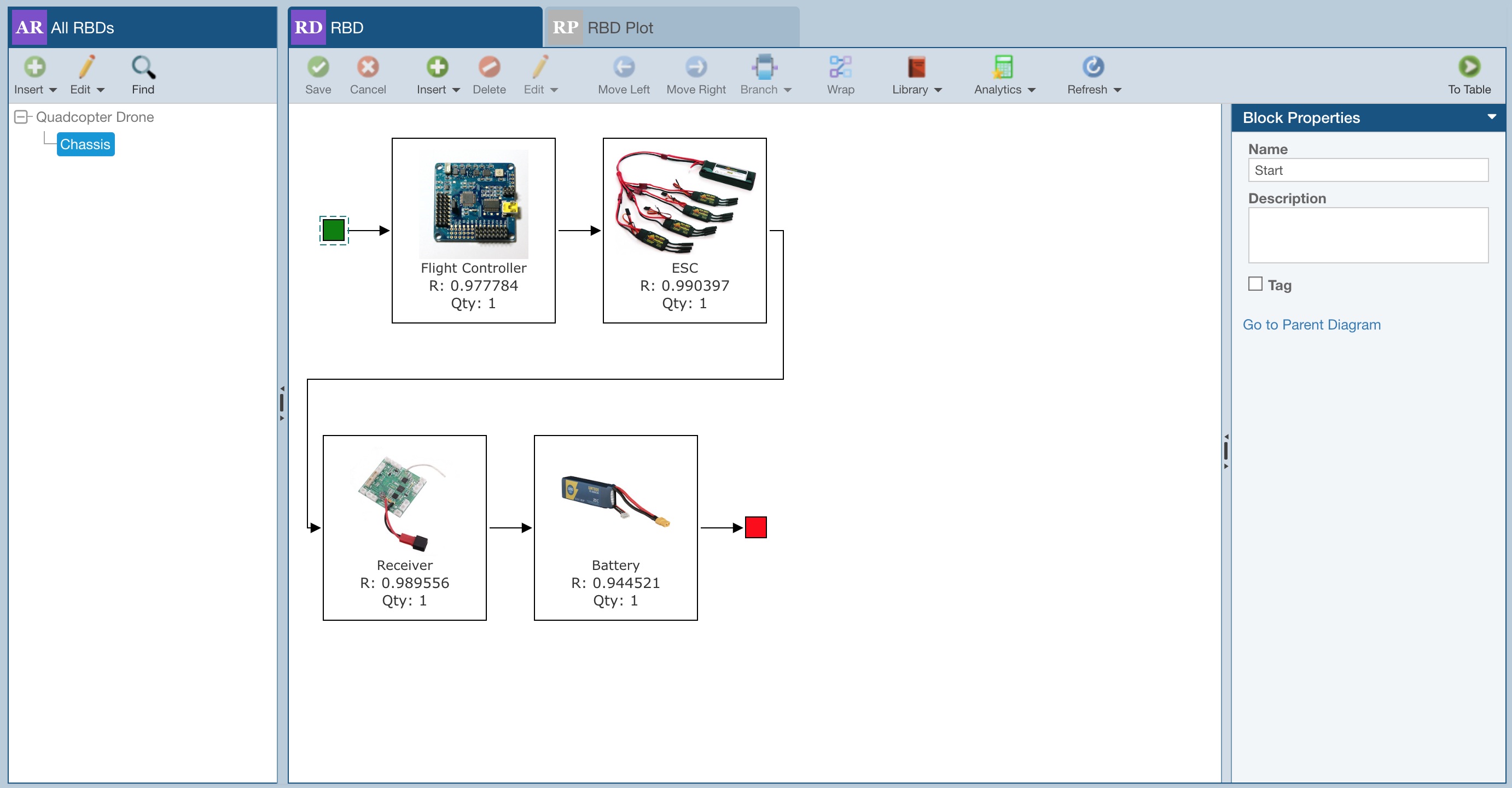 When you are done viewing the RBD Plot pane, click the RBD tab to return to the RBD diagram.