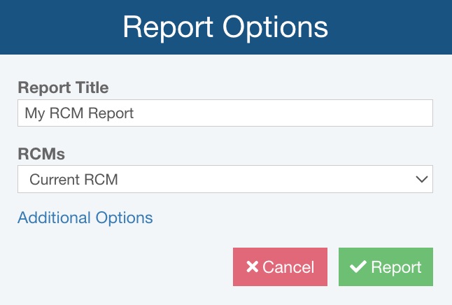 If needed, click Additional Options to see additional reporting options. For more details about these options, see Generating RCM Reports.