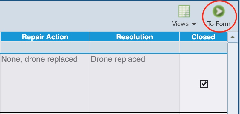 Make sure Incident001 in the Quadcopter Drone is selected in the Incident Table, and then click the To Form button in the toolbar.