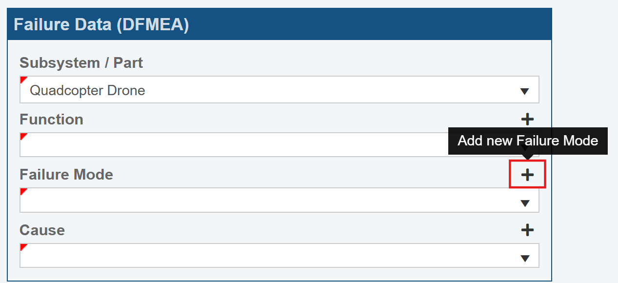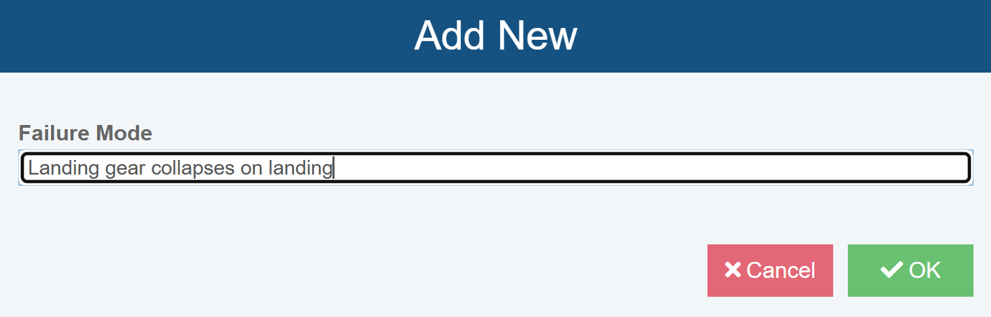 Click the '+' button next to the Failure Mode label (the Add new Failure Mode tooltip will appear when hovering over the '+' button).