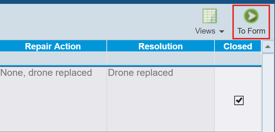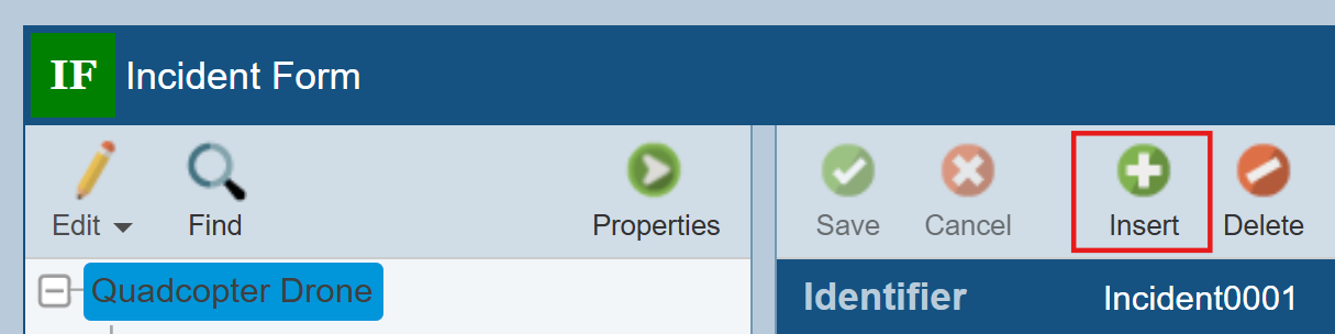 Make sure Incident001 in the Quadcopter Drone Analysis Tree item is selected in the Incident Table, and then click the To Form button in the toolbar.