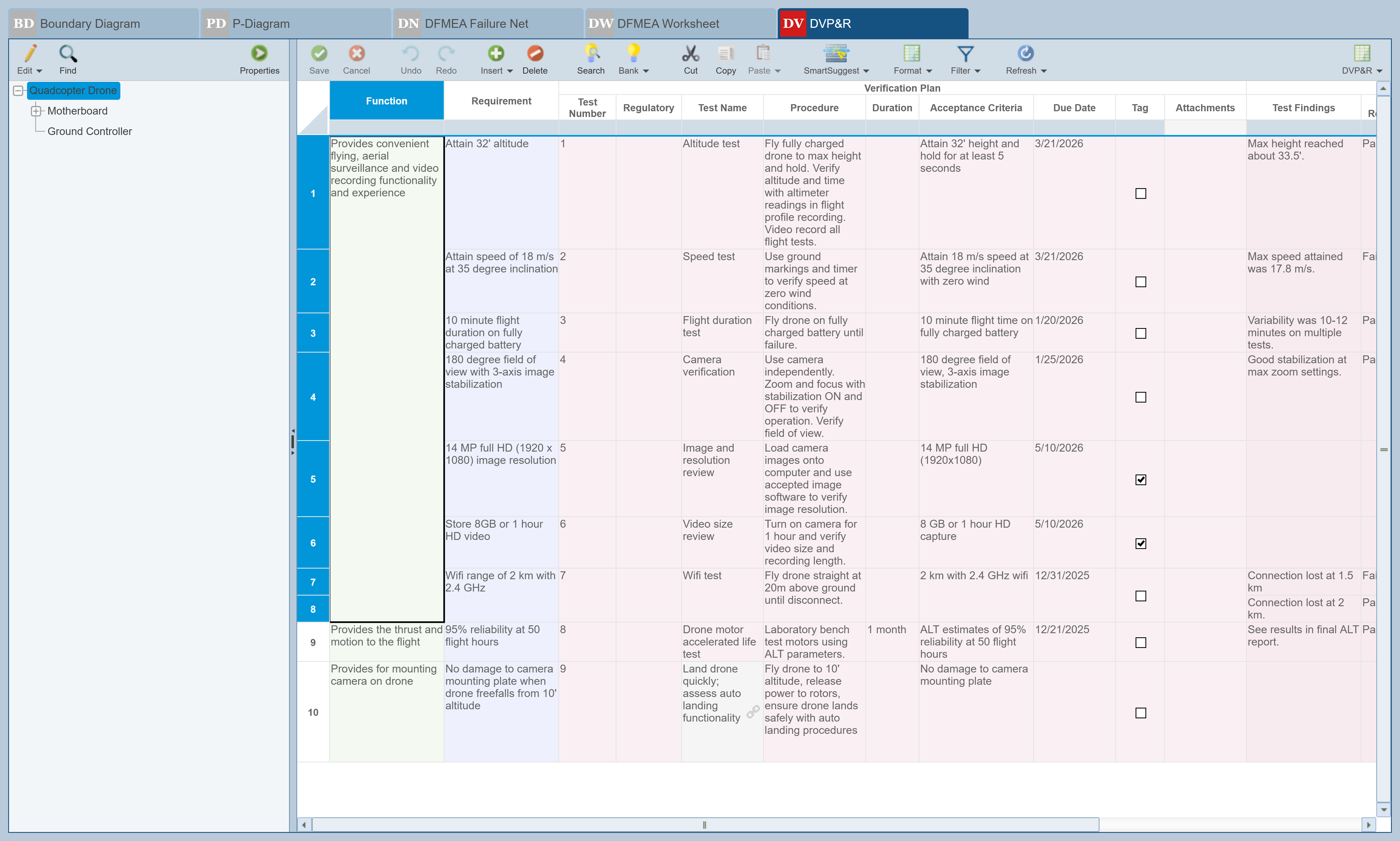 The final step in your design FMEA work is to create a Design Verification Plan & Report, or DVP&R, if needed. A DVP&R can be used to help manage and document your tasks associated with verifying that your product meets design requirements.