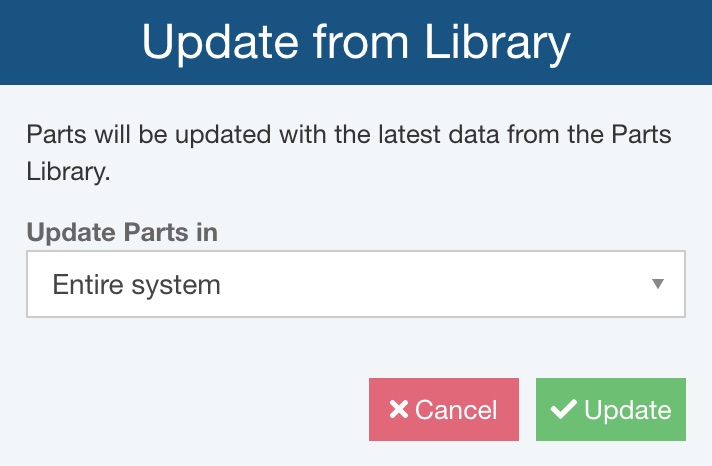 - Entire system - when selected, Parts within the entire Analysis will be updated with any changes