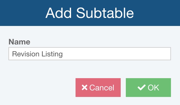 Enter the Name for your new Subtable and click OK.