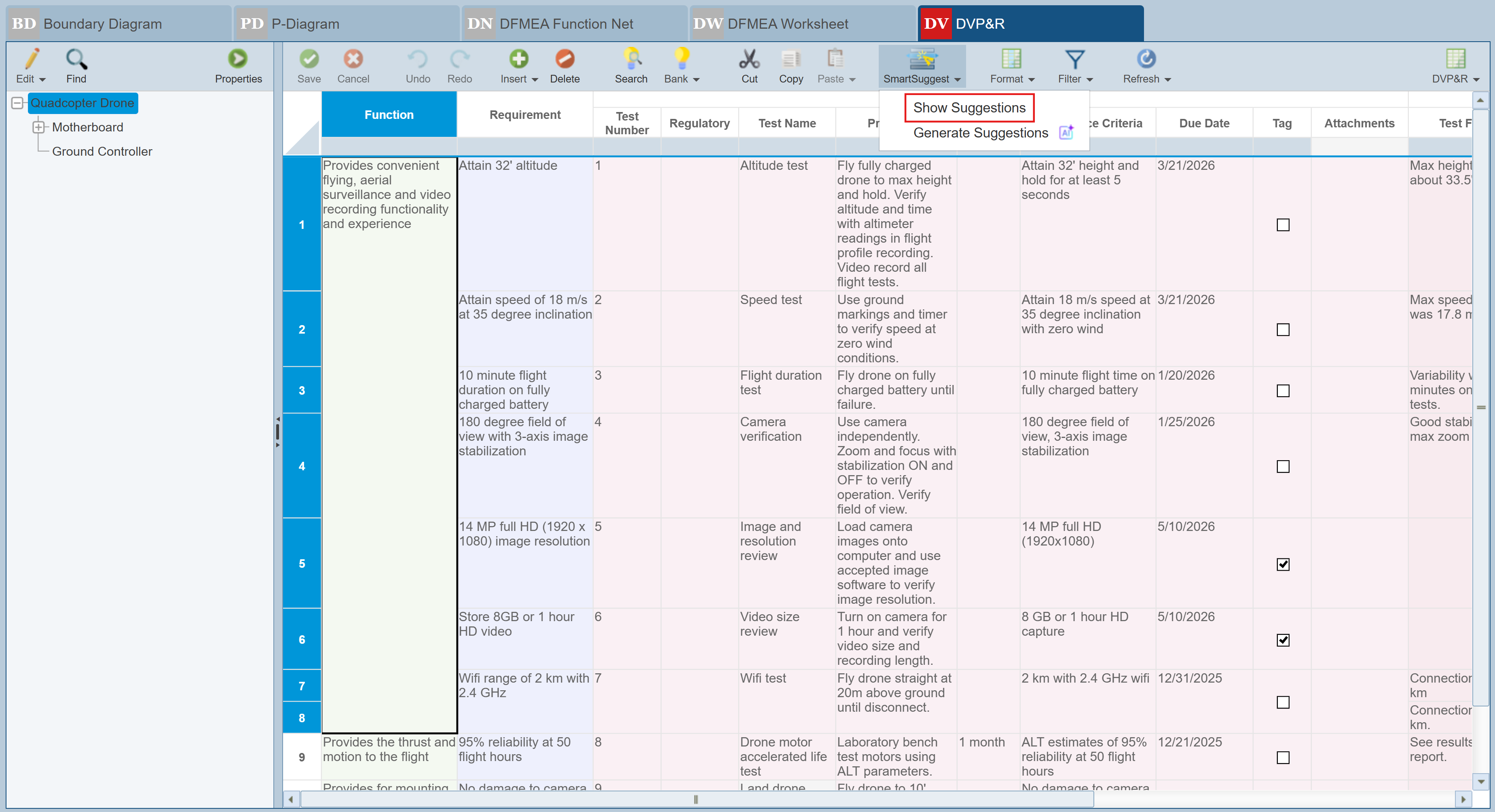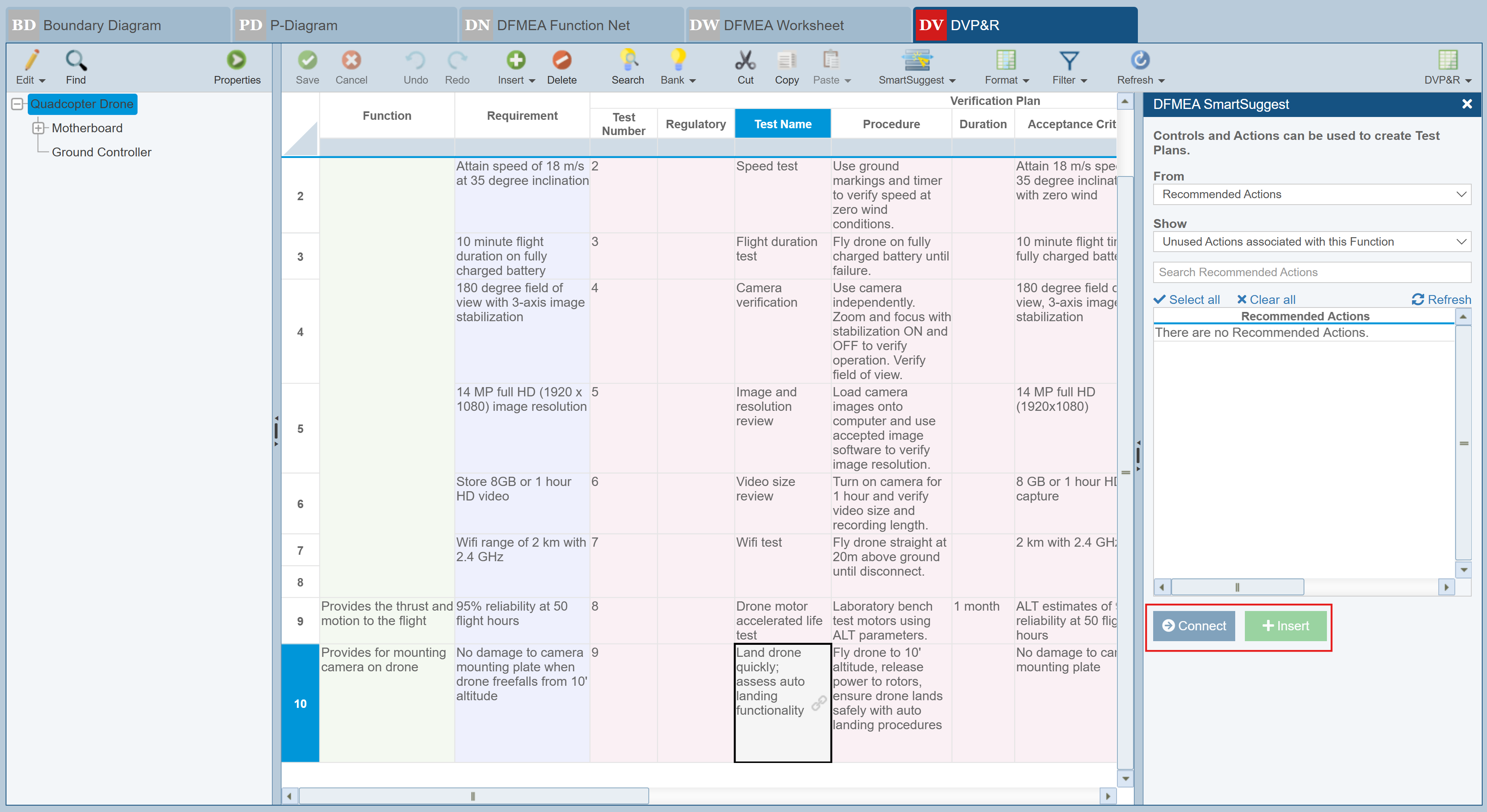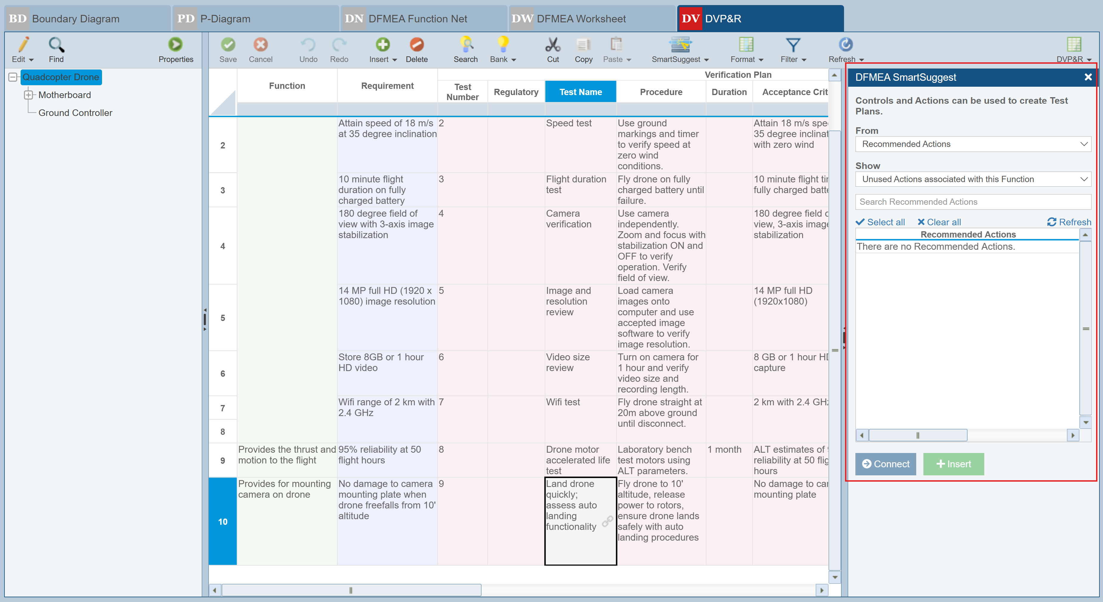 Using FMEA SmartSuggest to Add Controls or Actions as DVP&R Test Plans