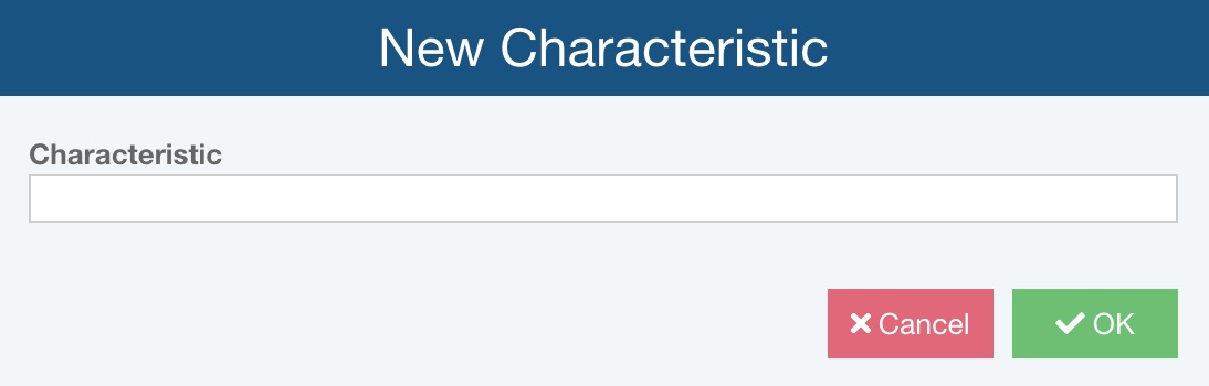 To access the Characteristics table, from the Sidebar, choose Configure>FMEA>Characteristics. The Characteristics dialog appears.