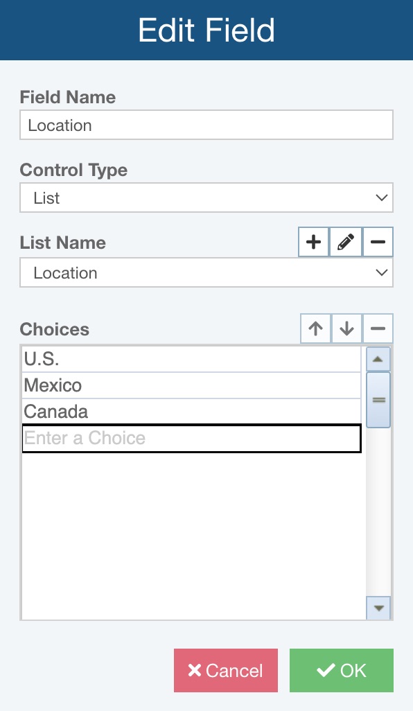 Enter the Field Name for the new field. The Field Name of the field will be used as the column header in the Subtable when displayed on the FRACAS Form.