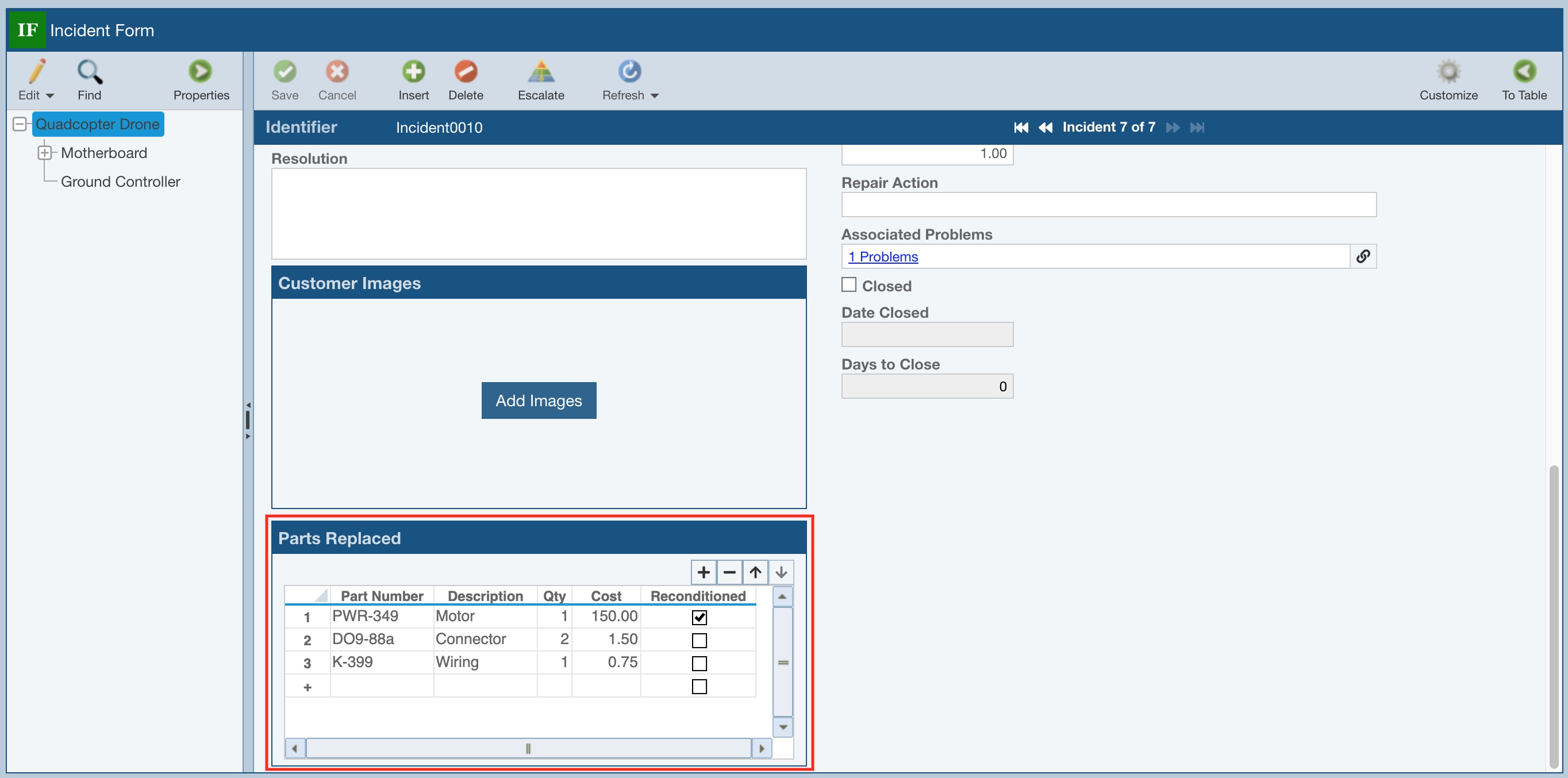 Subtables can be used for any purpose, such as documenting team members who attended a meeting, a list of steps taken, a list of parts replaced, or any other type of data you want to enter on a FRACAS Incident or Problem.