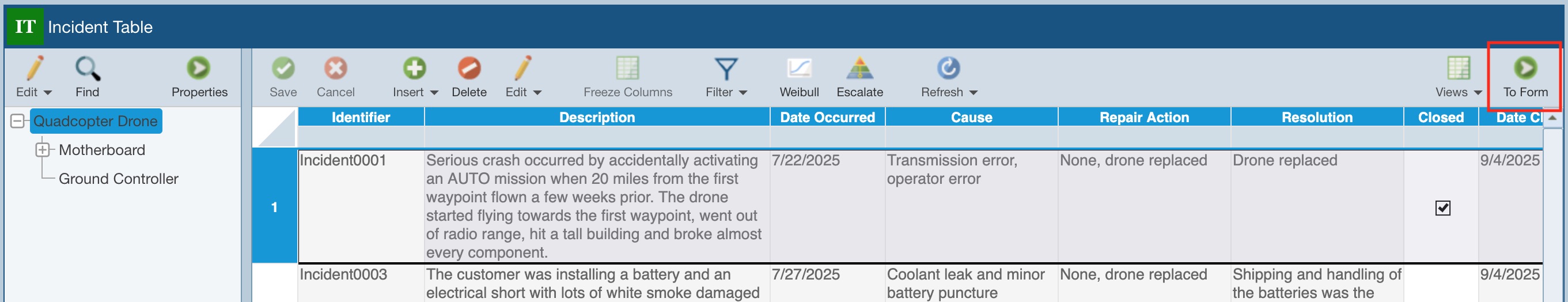 Make sure the Incident or Problem Form view is active. If the Incident or Problem Table is shown, click the To Form button on the upper right of the toolbar to display the Incident or Problem Form.