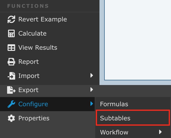 To create a new Subtable, click Configure>Subtables from the Sidebar menu when Relyence FRACAS is active.