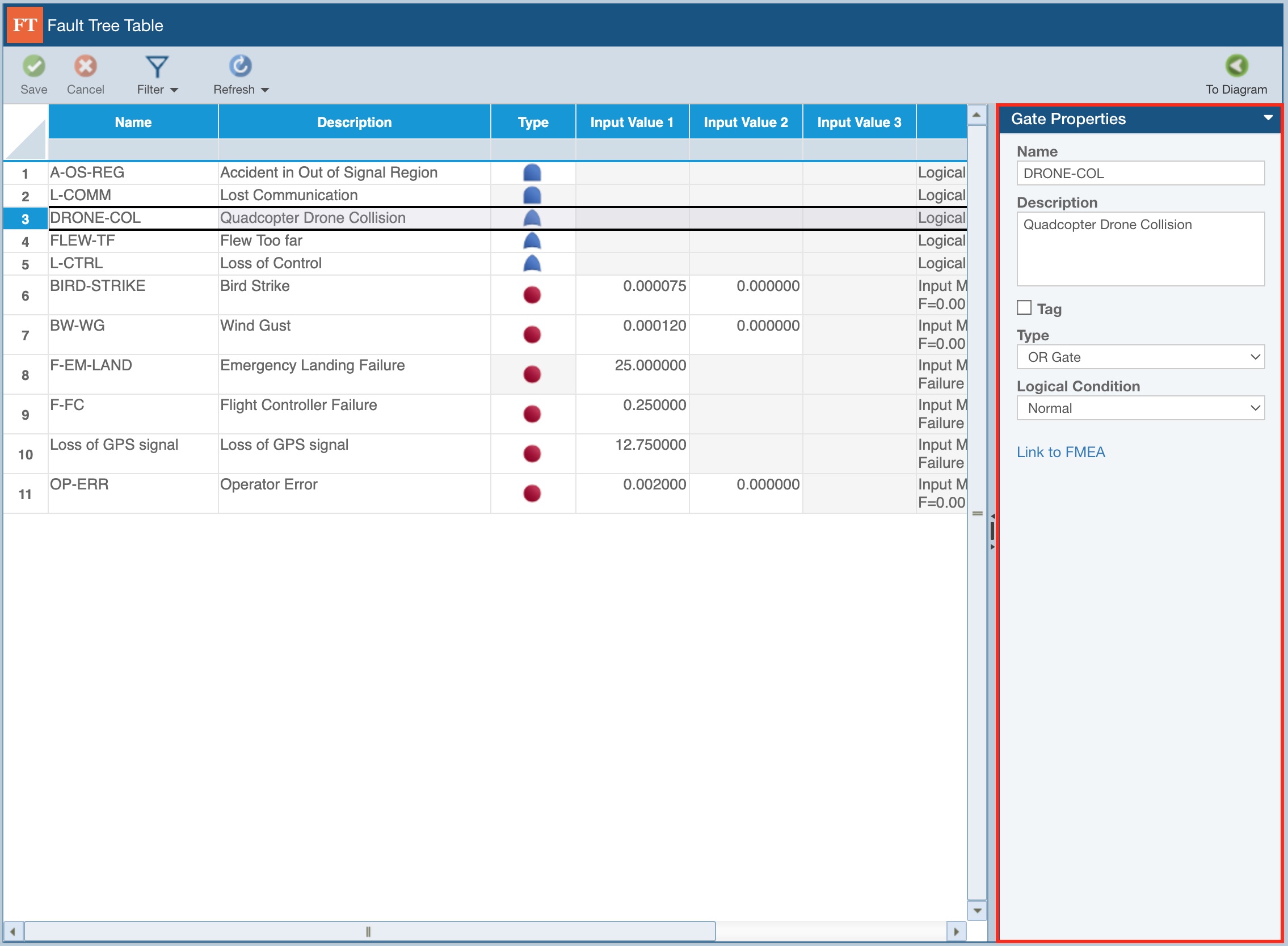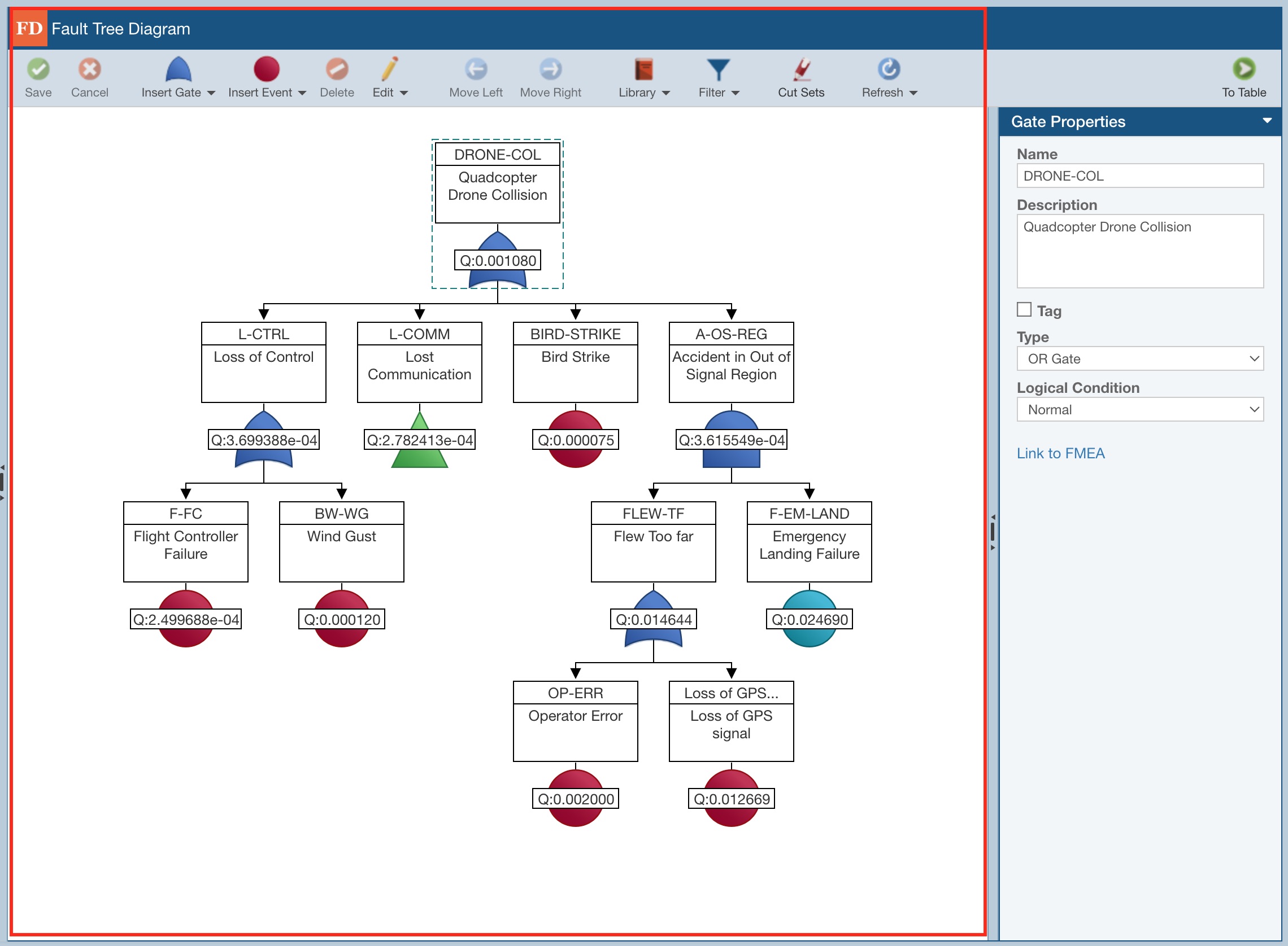 You can also select any Gate or Event in the Fault Tree Table and review the Properties pane on the right.