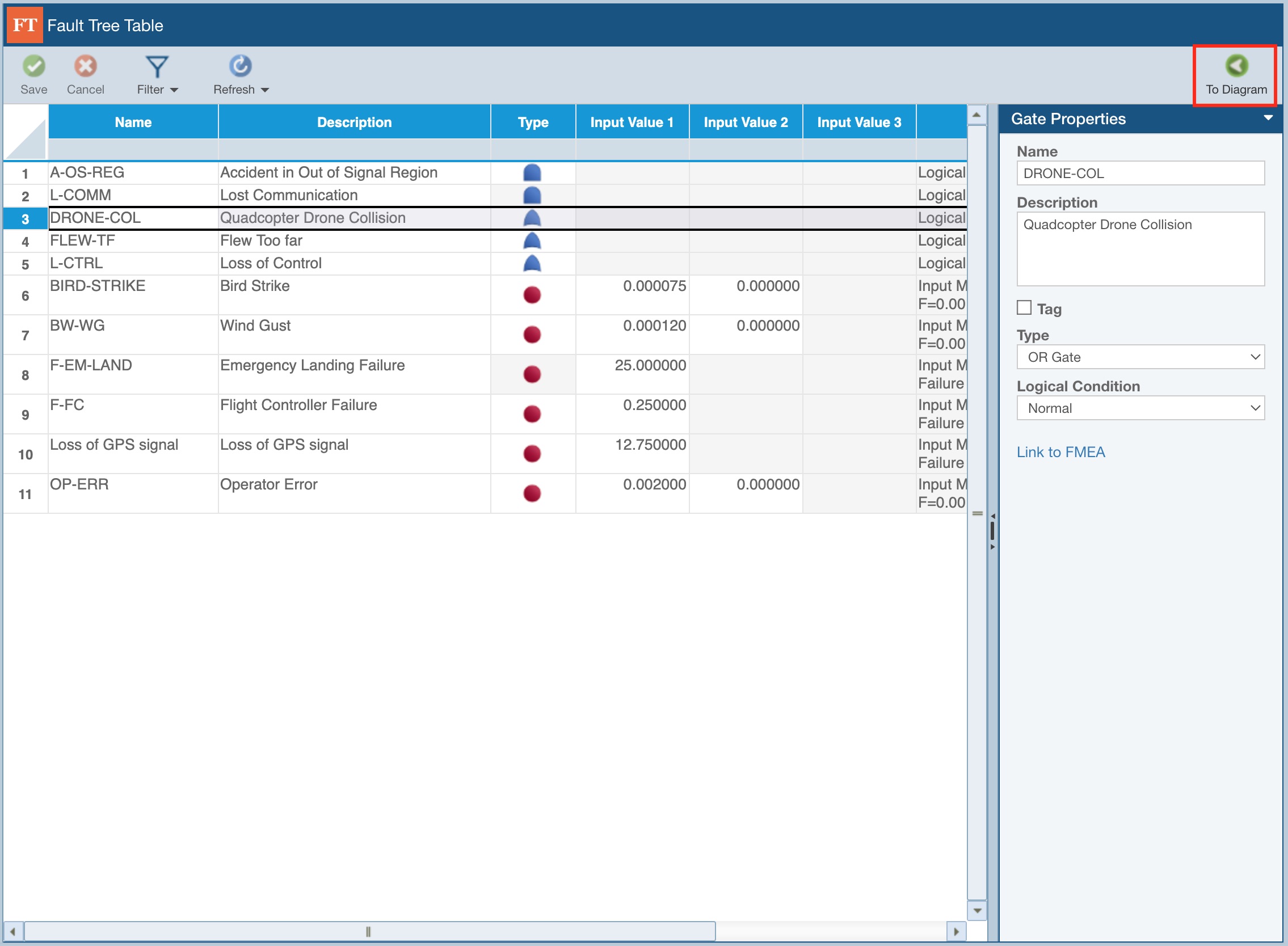 To return to the Fault Tree Diagram graphical view, click To Diagram.