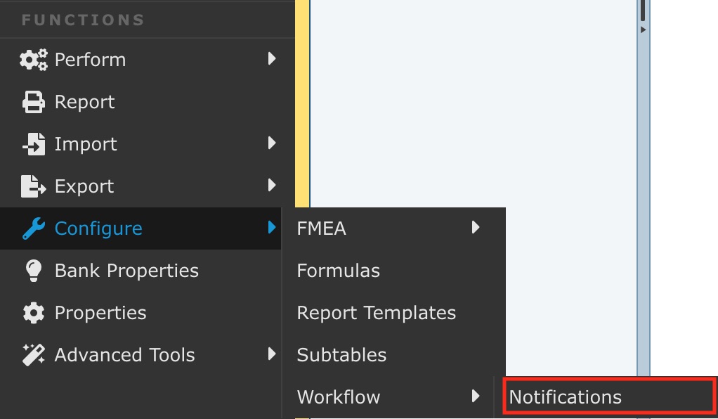 To create custom FMEA Formulas in a Knowledge Bank, from the Sidebar, select Configure>Formulas.