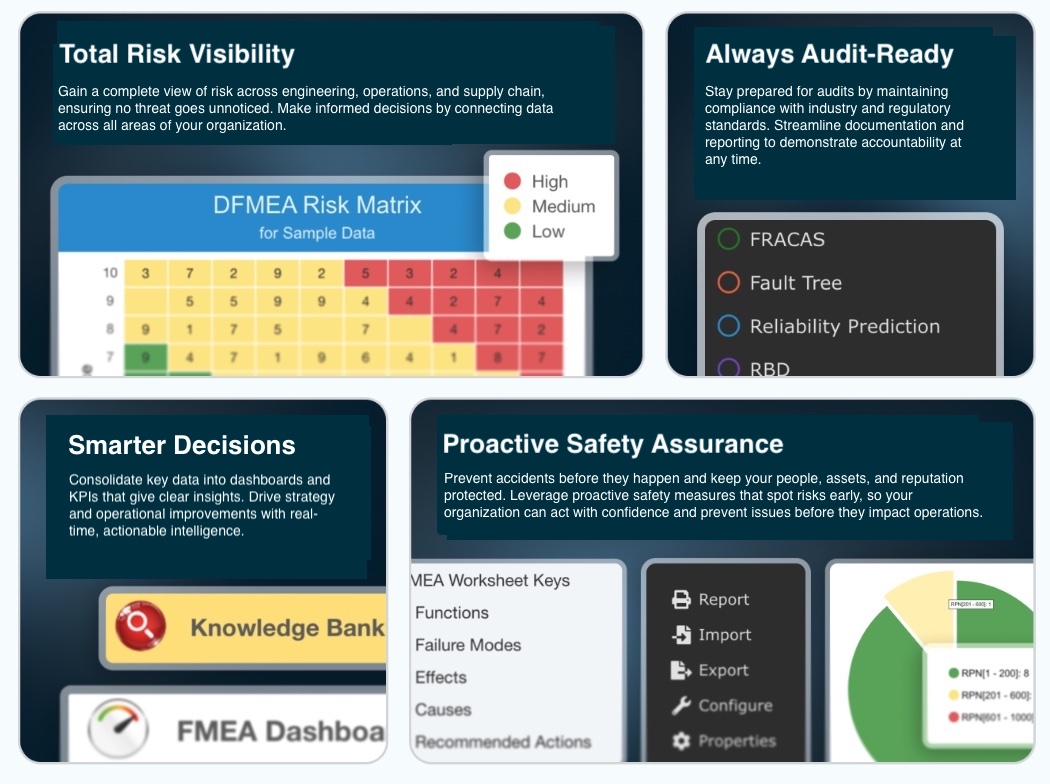 The customization feature for the FMEA module makes this tool superior to all other systems. I can’t say enough about the excellent customer service and availability of the team.